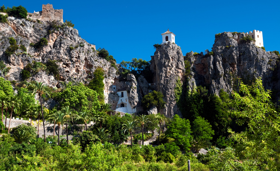Den historiske fjellandsbyen Guadalest, "ørneredet" som er skåret inn i en fjelltopp, og er ett flott syn med husene som klatrer seg oppover den bratte fjellskråningen. Fra toppen av byen har man en fantastisk hav utsikt.