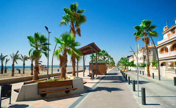Kystområdene og strendene er kjent som Costa Calida og har også sin egen sjø, Mar Menor (Europas største lagune), som har tilknytning til den meget pittoreske og rolig Calblanque naturreservat som ligger langs kysten i nærheten av Cabo de Palos og La Manga Golf.